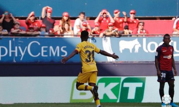 Ο Ανσού Φατί έκανε το ντεμπούτο του την προηγούμενη εβδομάδα με την Μπαρτσελόνα απέναντι στη Ρεάλ Μπέτις. Σήμερα απέναντι στην Οσασούνα έγραψε ιστορία καθώς, σκόραρε μόλις πέντε λεπτά μετά την είσοδό του στην αναμέτρηση!