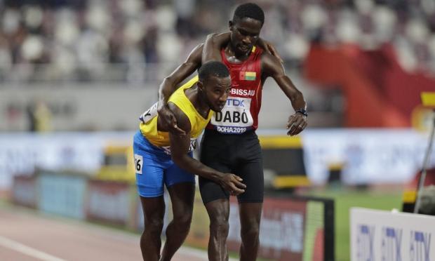 Το μεγαλείο του αθλητισμού έδειξε το πρόσωπό του στην πρώτη μέρα του Παγκοσμίου Πρωταθλήματος Στίβου της Ντόχα στο Κατάρ. Ολο το γήπεδο σηκώθηκε όρθιο και πρόσφερε ένα μοναδικό standing ovation στον Μπράιμα Σούνκαρ Νταμπό από τη Γουινέα, που είδε τον συναθλητή του Τζόναθαν Μπάσμπι από την Αρούμπα να καταρρέει. Αμέσως στάθηκε δίπλα του, τον πήρε αγκαλιά και τον βοήθησε να τερματίσουν μαζί στην κούρσα για τον προκριματικό των 5000μ. Συγκλονιστική είναι η στιγμή αμέσως μετά τον τερματισμό, όταν ο Μπάσμπι, εξουθενωμένος, σταμάτησε το χρονόμετρό του για να δει τον χρόνο που έκανε!