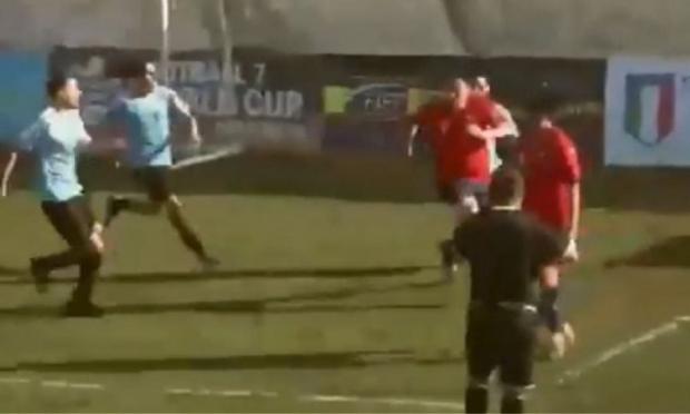 Στο Παγκόσμιο Κύπελλο 7x7 η αναμέτρηση της Χιλής με την Ουρουγουάη πήγε να τιναχτεί στον αέρα μετά από μια προκλητική ενέργεια ενός Χιλιανού παίκτη.