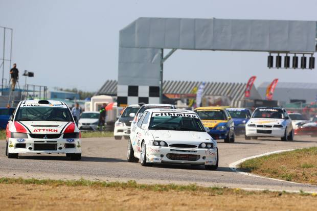 Ο Σ. Παπαδόπουλος που ξεκινούσε 2ος με το πολύ εντυπωσιακό Ford Escort RS2000, έμεινε ακινητοποιημένος στην εκκίνηση, με αποτέλεσμα να βρεθεί πίσω από τον Σ. Σταυρουλάκη (Honda Civic Type R) και τον Γ. Ζυγογιάννη (Audi A3). Το Escort ακολουθούσε από κοντά το A3 και ερχόταν σχεδόν δίπλα του στη μεγάλη ευθεία χωρίς να καταφέρνει να περάσει. Κάτι που τελικά συνέβη όμως στον 3ο γύρο. Στον επόμενο πέρασε και τον Σταυρουλάκη, και λίγο αργότερα έγραψε τον ταχύτερο γύρο του, 1:04.443.