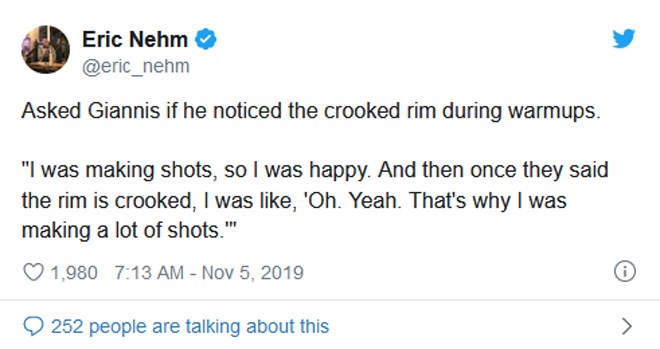 Ο Γιάννης Αντετοκούνμπο είπε μία επική ατάκα με αφορμή τη χαλασμένη μπασκέτα, που ήταν και ο λόγος που καθυστέρησε μία ώρα η έναρξη του αγώνα των Μπακς με τους Τίμπεργουλβς στη Μινεσότα.
