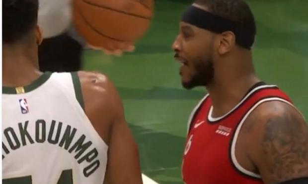 Εκνευρισμένος με τον Γιάννη Αντετοκούνμπο φάνηκε ο Καρμέλο Άντονι μετά από μία μεταξύ τους μονομαχία κάτω από το καλάθι, στην αναμέτρηση μετά Μπακς και Μπλέιζερς, και μίλησε σε πολύ έντονο ύφος στον "Greek Freak" με τον Έλληνα φόργουορντ όμως να μην αντιδρά.