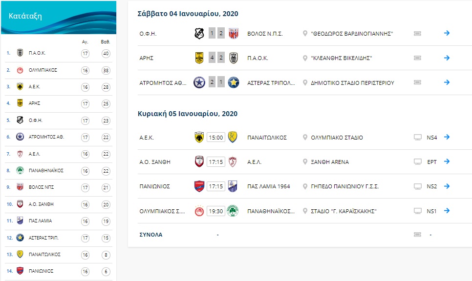 Όσον αφορά τον θριαμβευτή του ντέρμπι της Θεσσαλονίκης, Άρη, εκμεταλλεύτηκε την ήττα του ΟΦΗ από τον Βόλο και πέρασε στην 4η θέση.