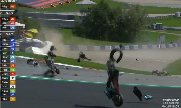 Η μηχανή του Ζοάν Ζαρκό ήρθε σε επαφή με αυτή του Φράνκο Μορμπιντέλι στο MotoGP της Αυστρίας, την ώρα που ο πρώτος προσπάθησε να προσπεράσει το δεύτερο. Τα όσα ακολούθησαν… περιγράφονται ιδανικά μόνο από την εικόνα, που συγκλονίζει.