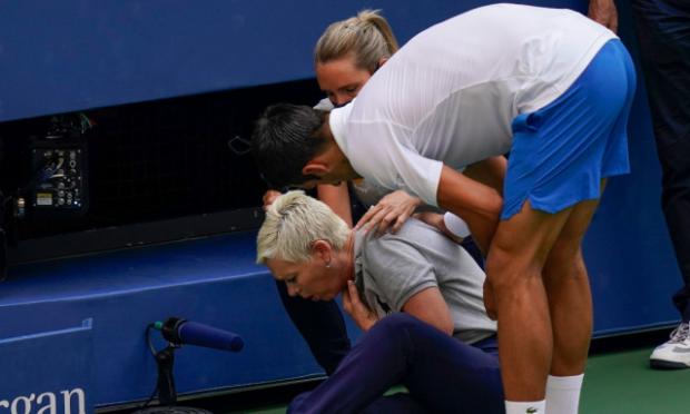 Η γυναίκα έπεσε στο έδαφος από τους πόνους καθώς πνιγόταν, με τον Τζόκοβιτς να τρέχει αμέσως προς το μέρος της. Η ίδια έδειχνε πολύ δυσαρεστημένη, με τους υπεύθυνους της διοργάνωσης να κατεβαίνουν στο κορτ λίγο αργότερα και να ανακοινώνουν στον Τζόκοβιτς τον αποκλεισμό του, όπως προβλέπεται από τους κανονισμούς.