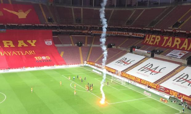 Οπαδοί που βρέθηκαν έξω από το γήπεδο κατά τη διάρκεια του ντέρμπι της Τουρκίας ανάμεσα στην Γαλατάσαραϊ και της Φενέρμπαχτσε, κατάφεραν να εκτοξεύσουν φωτοβολίδες και μια εξ αυτών έπεσε στον αγωνιστικό χώρο!