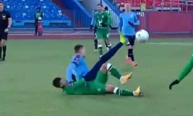 Ο αντίπαλος επιθετικός, Βλάντισλαβ Μπράγκιν, τον έριξε στο έδαφος με αγκωνιά σε μια διεκδίκηση, μια φάση που φυσικά είναι απευθείας κόκκινη κάρτα για τον παίκτη της Χαμπάροφσκ.