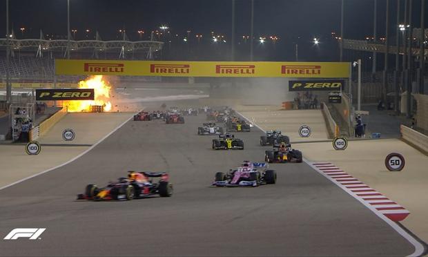 O αγώνας στο Μπαχρέιν στιγματίστηκε από το τρομακτικό ατύχημα του Grosjean (που είναι καλά στην υγεία Ο αγώνας καθυστέρησε για 75 λεπτά...του).