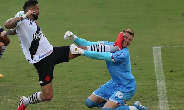 Ο στόπερ της Βάσκο έριξε μια κλωτσιά στο πρόσωπο με τις τάπες στον πορτιέρο που είχε βγει για να διώξει την μπάλα.