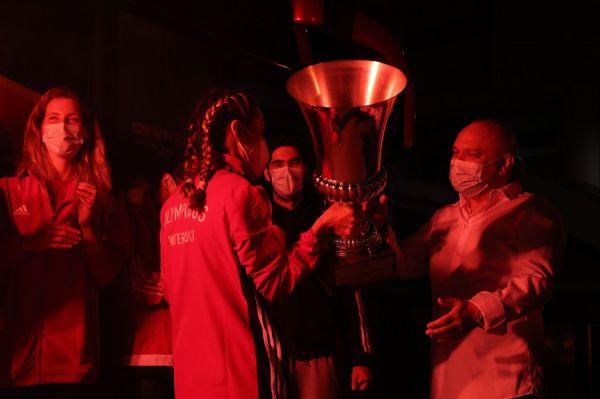 Την αποστολή του Ολυμπιακού υποδέχτηκε ο πρόεδρος του Ερασιτέχνη, Μιχάλης Κουντούρης που δεν μπορούσε να κρύψει τη χαρά του για τη δικαίωση της μεγάλης προσπάθειας αυτών των κοριτσιών και φυσικά του προπονητή τους.