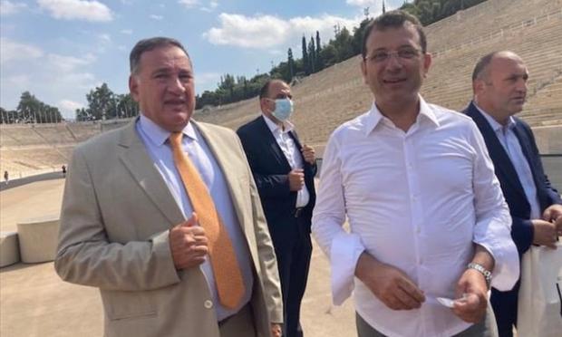 Ο κ. Καπράλος παρουσίασε στον δήμαρχο της Κωνσταντινούπολης την ιστορία του Καλλιμάρμαρου και του μίλησε για την αναβίωση των Ολυμπιακών Αγώνων στην Αθήνα το 1896.