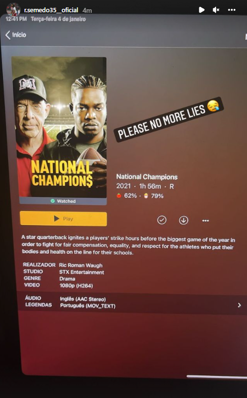 Ο Πορτογάλος κεντρικός αμυντικός αργότερα ανέβασε Instagram Story στο οποίο γράφει: «Οχι άλλα ψέματα» με φωτογραφία στην οποία δείχνει πως βλέπει το «Nations Champions».
