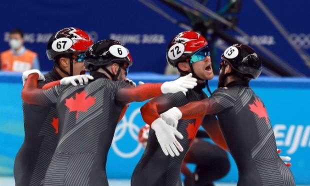 Ο Καναδάς κατέκτησε το χρυσό μετάλλιο στη σκυταλοδρομία 5.000 μέτρων ανδρών του πατινάζ ταχύτητας σε μικρή πίστα, στο πλαίσιο των Χειμερινών Ολυμπιακών Αγώνων του Πεκίνου.