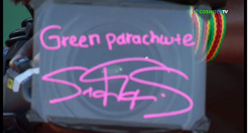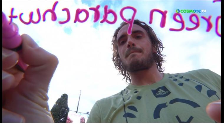 Μετά το τέλος του αγώνα, ο Στέφανος Τσιτσιπάς έστειλε το δικό του μήνυμα στην κάμερα, γράφοντας “πράσινο αλεξίπτωτο”.