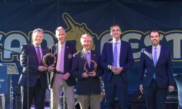 Ο Κώστας Μπακογιάννης βρέθηκε χθες Παρασκευή (15.04.2022) στη Βοστώνη και κατά τη διάρκεια της επίσημης τελετής έναρξης του Μαραθωνίου, στην κεντρική πλατεία Κόπλεϊ, παρουσία της δημάρχου της αμερικανικής πόλης και του υπουργού Εργασίας των ΗΠΑ, παρέδωσε τα στεφάνια τους διοργανωτές.