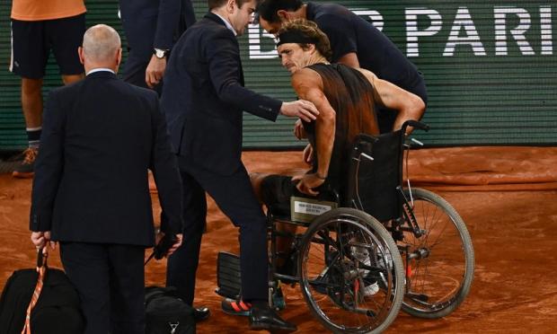 Ο Αλεξάντερ Ζβέρεφ σφάδαζε από τους πόνους και χρειάστηκε οι διοργανωτές να φέρουν αναπηρικό καροτσάκι για να τον οδγηγήσουν στα αποδυτήρια.