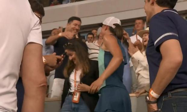 Η Σβιόντεκ πήγε στο σημείο όπου είχαν καθίσει οι δικοί της άνθρωποι και τους πήρε αγκαλιά, ενώ… ανέβηκε λίγα σκαλιά, για να βρει τον συμπατριώτη της και κορυφαίο επιθετικό, Ρόμπερτ Λεβαντόφσκι.