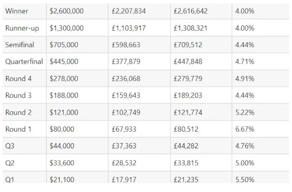 Όπως ανακοινώθηκε το prize money θα είναι 60 εκατ. δολάρια και τα ποσά είναι ιδιαίτερα αυξημένα σε σχέση με το 2021.