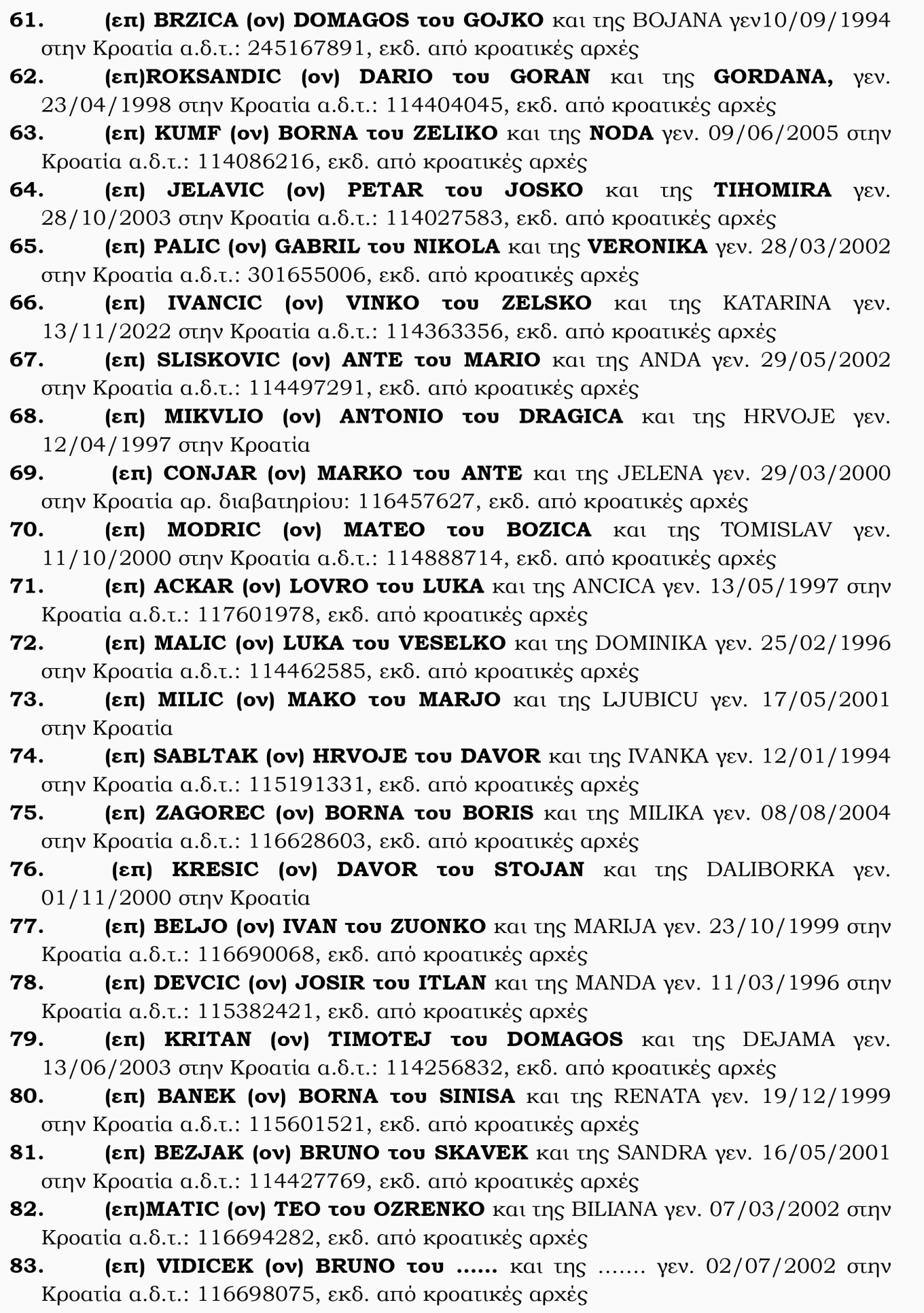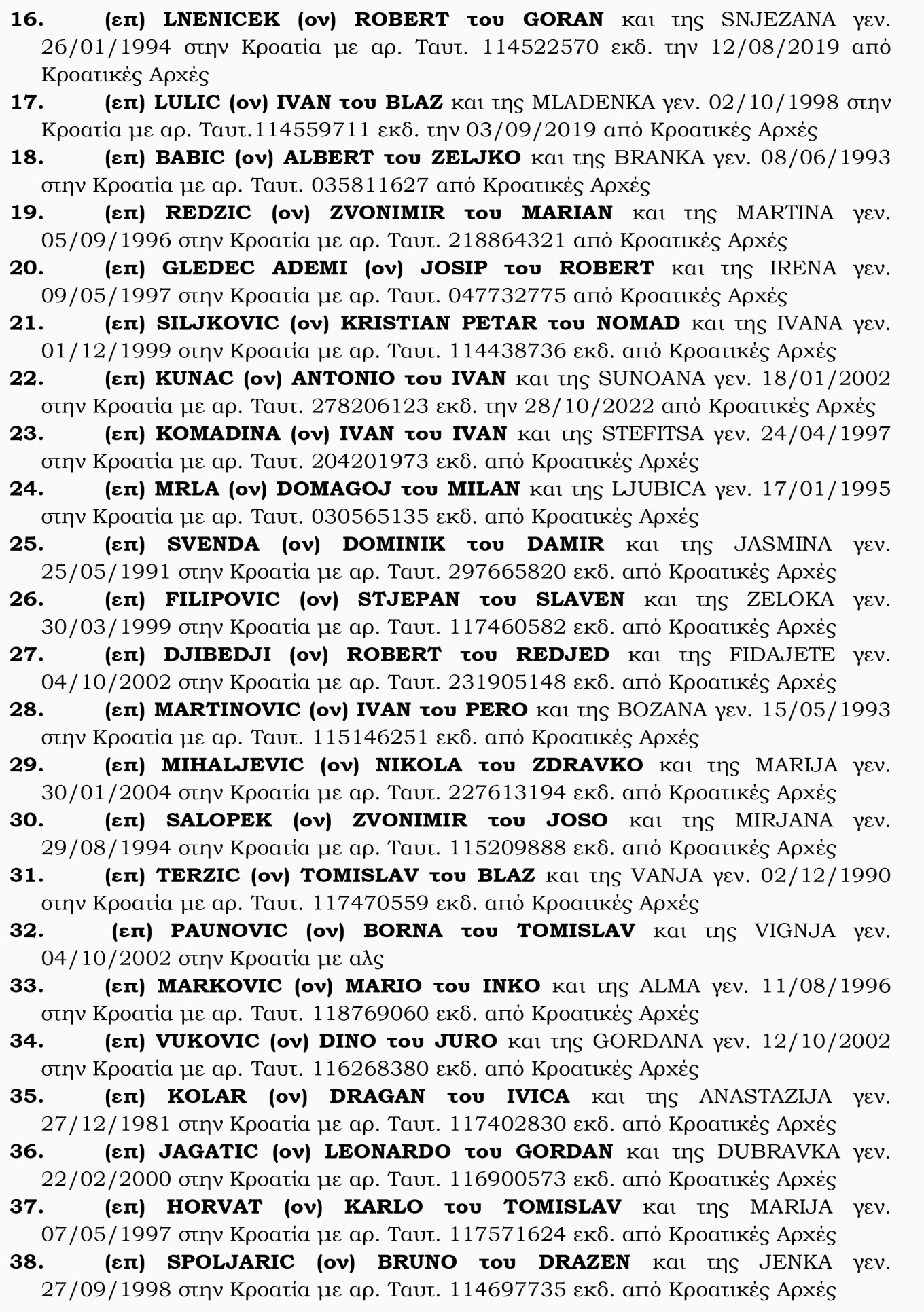Μετά τις συγκλονιστικές καταθέσεις του αδερφού του Μιχάλη Κατσουρή, του γιατρού που διαπίστωσε τον θάνατο του 29χρονου, ενός ειδικού φρουρού της Ομάδας Δράση, καθώς και άλλων τραυματιών από τη δολοφονική επίθεση έξω από το γήπεδο της ΑΕΚ, στη Νέα Φιλαδέλφεια, το protothema.gr φέρνει στο «φως» τα ονόματα των Κροατών χούλιγκαν και δύο από τις καταθέσεις των αστυνομικών. Η μία είναι κατάθεση από ειδικό φρουρό της Ομάδας Δράση και η άλλη είναι Υπαστυνόμου από την Υποδιεύθυνση Αντιμετώπισης Βίας στους Αθλητικούς Χώρους στο Τμήμα Προστασίας Αθλητισμού.