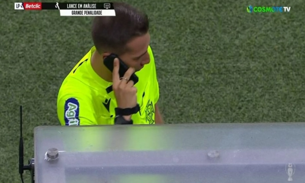 Ο VAR τον κάλεσε να εξετάσει τη φάση, όμως αυτό κατέστη αδύνατον επειδή η οθόνη είχε κάποιο τεχνικό πρόβλημα. Έτσι, ρέφερι και VAR τα... είπαν μέσω τηλεφώνου και εν τέλει ο πρώτος πήρε πίσω την απόφασή του!
