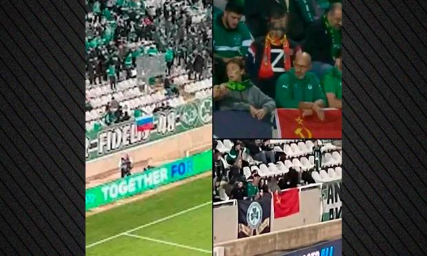 Στην πράσινη εξέδρα πίσω από το τέρμα του ΓΣΠ εμφανίστηκαν, κατά τη διάρκεια του αγώνα, μια τρίχρωμη ρωσική σημαία και μία κόκκινη σημαία της Σοβιετικής Ένωσης. Στα ίδια πλάνα διακρίνεται και φίλαθλος με μπλουζάκι που φέρει εμφανώς το γράμμα «Ζ», σύμβολο που έχει συνδεθεί με τη ρωσική εισβολή στην Ουκρανία και χρησιμοποιείται ως ένδειξη υποστήριξης της ρωσικής επιθετικότητας. Μετά από παρέμβαση των παρατηρητών του αγώνα, η ρωσική σημαία κατέβηκε, όμως η σοβιετική παρέμεινε αναρτημένη πίσω από την εστία μέχρι το τέλος του παιχνιδιού.