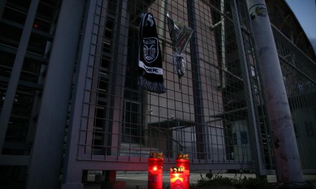 Με απόφαση της ΠΑΕ ΠΑΟΚ οι σημαίες έξω από το γήπεδο της Τούμπας κυματίζουν μεσίστιες.