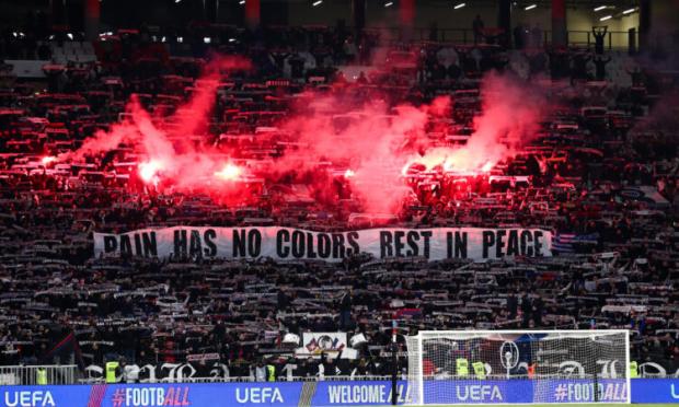 Οι φίλαθλοι του Δικεφάλου είπαν το δικό τους αντίο στους επτά αδικοχαμένους φίλους της ομάδας, που έχασαν τη ζωή τους στο πολύνεκρο τροχαίο στη Ρουμανία.