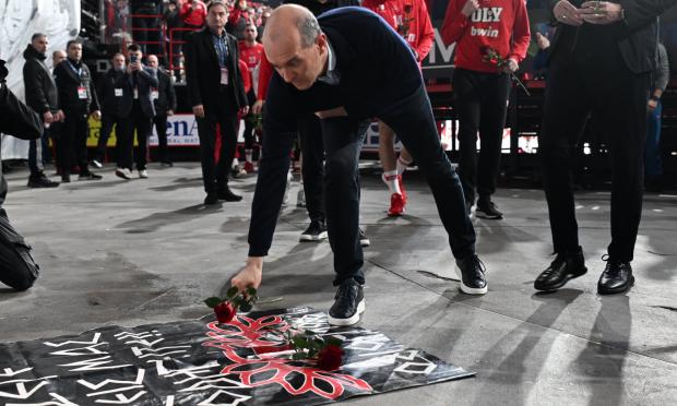 Οι παίκτες του Ολυμπιακού τίμησαν τη μνήμη των θυμάτων της τραγωδίας της θύρας 7 στο ΣΕΦ