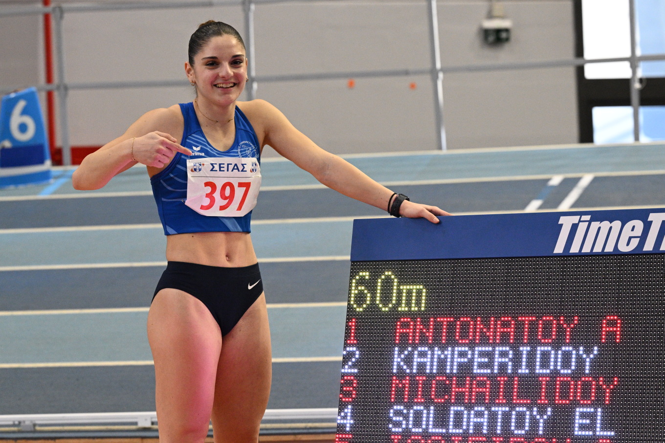 Εξαιρετική εμφάνιση πραγματοποίησε στα 60 μ. των γυναικών η 17χρονη Αποστολία Αντωνάτου.