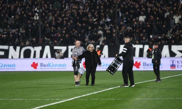 Και σήμερα όλα ήταν στη θέση τους, αλλά αυτήν τη φορά στον αγωνιστικό χώρο μαζί με τις κλασικές φιγούρες ήταν και μια μαυροφορεμένη κυρία, η οποία ανέλαβε να δώσει τον ρυθμό στην κερκίδα.