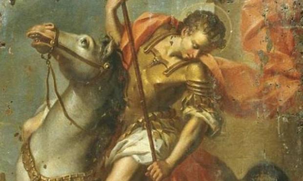 «Στα τελευταία χρόνια της Βυζαντινής αυτοκρατορίας ο Άγιος Γεώργιος χρειάστηκε περισσότερο ως προστάτης εναντίον στους κατακτητές παρά ως σύμμαχος σε μια μάχη που πιθανώς να κατέληγε σε νίκη. Αυτό εξηγεί τον τεράστιο αριθμό προστατευτικών αναπαραστάσεων στους υστεροβυζαντινούς ναούς. Αυτές ήταν πολυάριθμες στην Τρανσυλβανία όπου ο αυτόχθων ορθόδοξος ρουμανικός πληθυσμός επιζητούσε προστασία εναντίον των καθολικών Ανδεγαυών, καθώς και στην Κρήτη η οποία ήταν υποτελής στην Βενετία από το 1204 έως το 1669.»