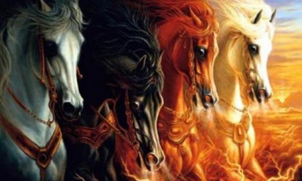 «Και ο καθήμενος επ’ αυτόν έχων ζυγών εν τη χειρί αυτού». Η ζυγαριά που κρατάει ο καβαλάρης του μαύρου αλόγου, που συμβολίζει τον θάνατο δια της πείνας και της στερήσεως, δείχνει ότι τα αγαθά πλέον θα είναι μετρημένα και θα δίνονται με το δελτίο, ζυγίζοντας τα για να αρκούν για όλους.