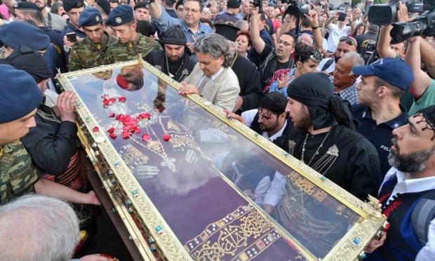 Ο επικεφαλής της αποστολής, γενικός διευθυντής της Αποστολικής Διακονίας, επίσκοπος Φαναρίου Αγαθάγγελος, είπε στο 'Πρώτο Θέμα” ότι η μεταφορά των ιερών λειψάνων στην Αθήνα αποτελεί “αντίσταση στην παρακμή. Όπως επισημαίνει ο Επίσκοπος Αγαθάγγελος μεγάλη είναι η προσέλευση νέων ανθρώπων από την Ελλάδα και το εξωτερικό που παίρνουν ένα μήνυμα ελπίδας ενώ προχθές το βράδυ κατέφθασαν και τρία πούλμαν με φοιτητές από την Σερβία και την πόλη που γεννήθηκε ο μεγάλος Κωνσταντίνος. Κάθε ημέρα οι πιστοί μπορούν να προσκυνήσουν από τις 7 έως και τις 10 το βράδυ ενώ την Κυριακή ανήμερα της γιορτής τη αγία Ελένης ο Αρχιεπίσκοπος Ιερώνυμος θα πραγματοποιήσει λειτουργία και θα ακολουθήσει πομπή.