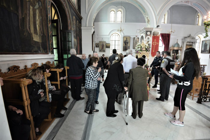 Η ελληνική αποστολή αρχικά μετείχε στην Βενετία στον εκκλησιασμό που πραγματοποιήθηκε με κατάνυξη στον ναό του Αγίου Γεωργίου των Ελλήνων, ιστορικό ναό της ελληνικής κοινότητας της Βενετίας, τον οποίο παρακολούθησαν Έλληνες που μένουν στην Ιταλία αλλά και ορθόδοξοι από άλλες χώρες.