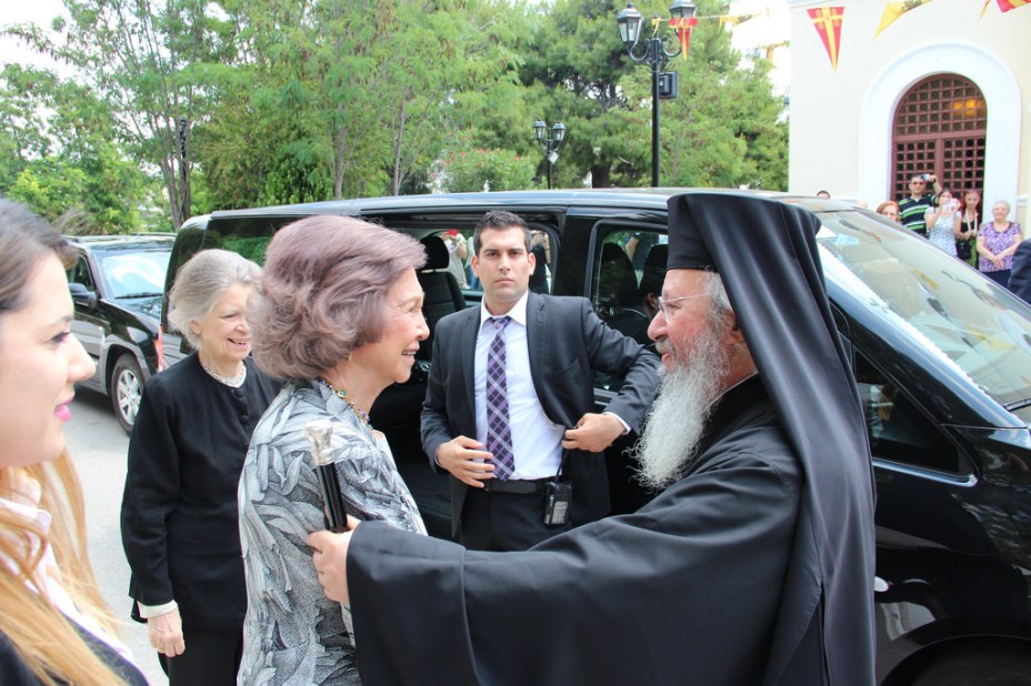 Τη βασίλισσα Σοφία, η οποία συνοδευόταν από την αδερφή της Ειρήνη, υποδέχθηκαν στα προπύλαια του ναού ο γενικός διευθυντής της Αποστολικής Διακονίας, Επίσκοπος Φαναρίου Αγαθάγγελος και ο Επίσκοπος Σαλώνων Αντώνιος με εκπροσώπους των τοπικών αρχών.