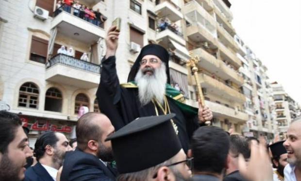 Στην πολεμούμενη και χειμαζόμενη από πάσης φύσεως αιμοσταγείς εχθρούς Συρία χθες έγινε η ενθρόνιση του νέου Μητροπολίτη Λαοδικείας στην ιστορική αυτή έδρα της χριστιανοσύνης στον καθεδρικό του Αγίου Γεωργίου. »΄Αξιος » φώναξε στα ελληνικά ο πατριάρχης Αντιοχείας Ιωάννης την ώρα που του παρέδιδε την ποιμαντορική ράβδο. »Άξιος » στην ελληνική επανέλαβε το πλήθος και ξέσπασε σε χειροκροτήματα. Άξιος στην ελληνική έψαλλε η χορωδία.