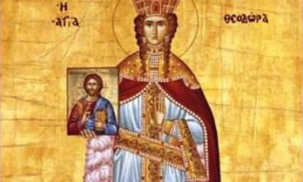 Δωρεῶν τῶν ἐνθέων οὖσα ἐπώνυμος, τὴν Ἐκκλησίαν φαιδρύνεις βασιλικαὶς δωρεαίς, ὡς θεόγλυπτος εἰκὼν θείας φρονήσεως, τῶν γὰρ Εἰκόνων τῶν σεπτῶν, τὴν τιμὴν ὡς σχετικήν, ἐτράνωσας Θεοδώρα, τῶν Βασιλίδων ἄκρατης, τῶν Ὀρθοδόξων ἐγκαλλώπισμα.