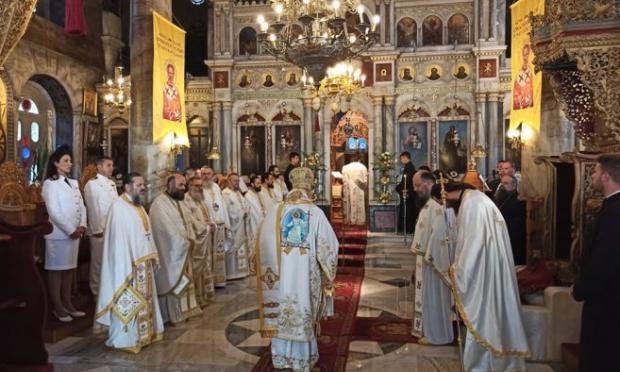 Της αρχιερατικής Θείας Λειτουργίας προέστη ο εορταζόμενος Μητροπολίτης μας κ.κ Ευσέβιος και συλλειτούντων Ιερέων της Ιεράς Μητροπολεώς μας καθώς και κληρικών που ταξίδεψαν για να παραβρεθούν στα ονομαστήρια αυτού.