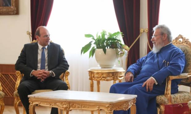 Μετά την κατ’ ιδίαν συνάντηση τού Νέου Υπουργού Αμύνης με τον Μακαριώτατο, ο δεύτεος παρέθεσε γεύμα στον Υπουργό.