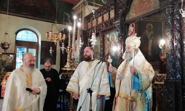 Τον Σεβ. στην Θ. Λειτουργία πλαισίωσαν ο αρχιμ. π. Γαβριήλ Τεκνετζόγλου, προϊστάμενος του Ι.Ναού, ο πρωτοπρ. π. Παναγιώτης Χαβάτζας και ο διάκονος π. Χριστόδουλος Κρουστάλης, ενώ στο αναλόγιο ήταν ο μουσικολογιώτατος κ. Γεώργιος Δεμελής.