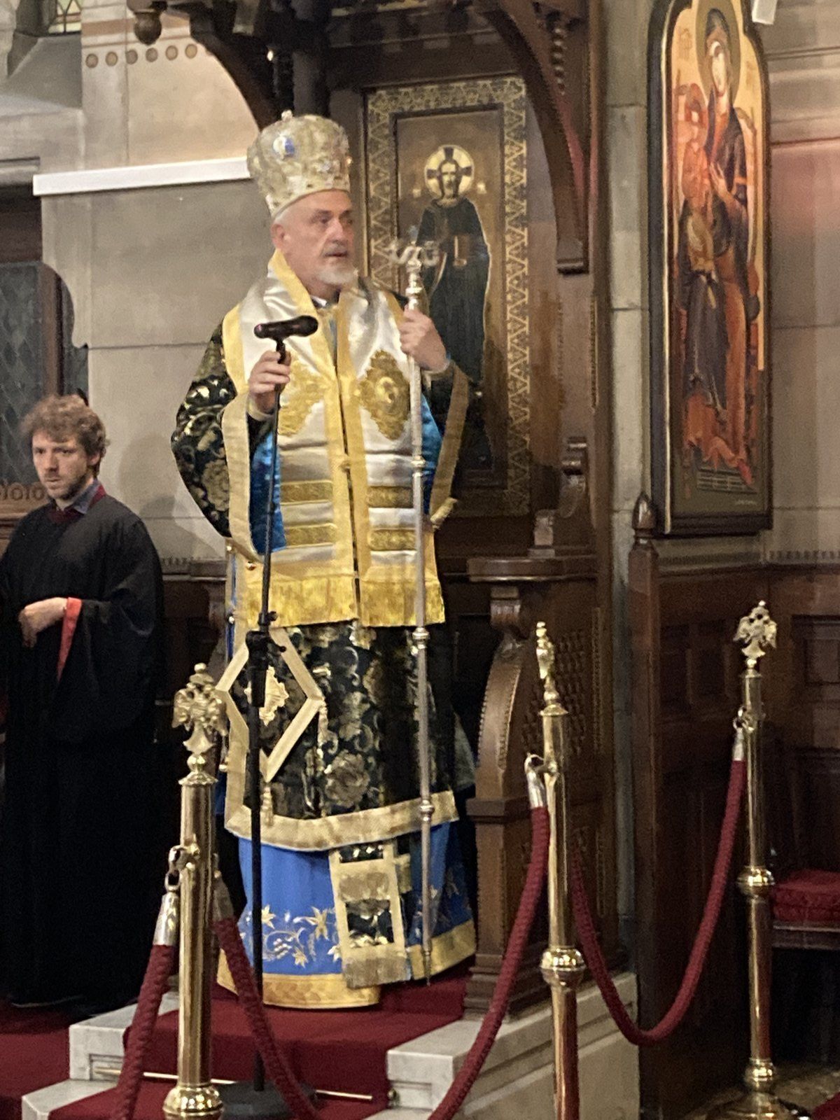 Ο Μητροπολίτης Γαλλίας στο κήρυγμά του τόνισε τον ρόλο της Παναγίας ως σκεύος εκλογής, ως πρότυπο υπακοής στον Θεό και ως μεσίτρια προς τον Σωτήρα Χριστό.