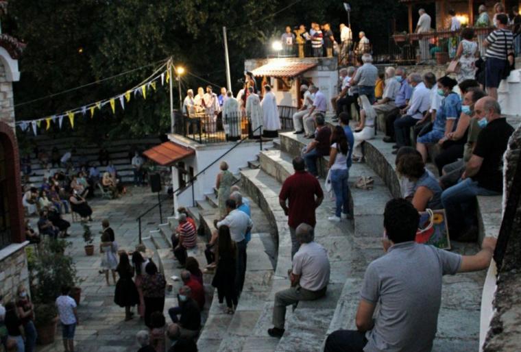 Την παραμονή της εορτής τελέστηκε υπαιθρίως, στο αμφιθεατρικό προαύλιο του Ναού, ο Μέγας Πανηγυρικός Εσπερινός, χοροστατούντος του Σεβ. Μητροπολίτου Δημητριάδος κ. Ιγνατίου, τον οποίο πλαισίωσε ικανός αριθμός Κληρικών και λαϊκών προσκυνητών, τηρουμένων των μέτρων για την προστασία της δημόσιας υγείας.