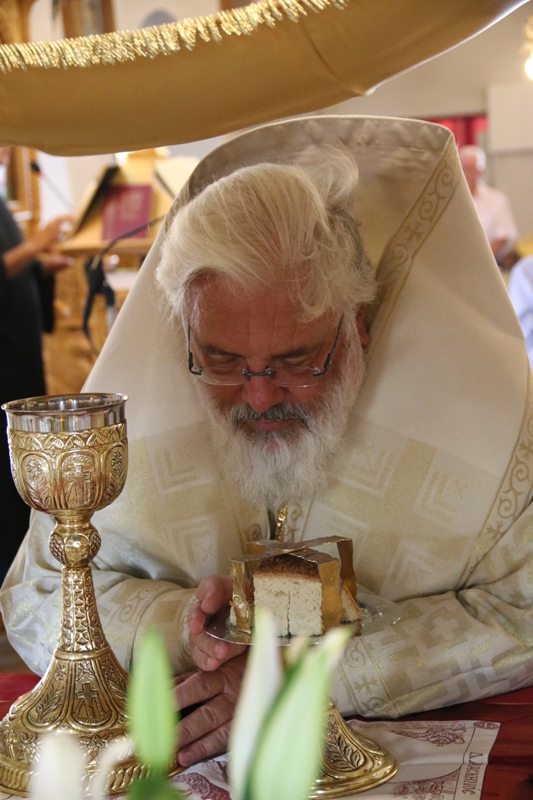 Το εσπέρας της κυριωνύμου ημέρας της εορτής ο Σεβασμιώτατος προσήλθε στον ωσαύτως πανηγυρίζοντα Ιερό Ενοριακό Ναό Κοιμήσεως Θεοτόκου Φυλακίου, του τέως Δήμου Κυπρίνου, και χοροστάτησε στην ακολουθία του Μεθέορτου Εσπερινού.