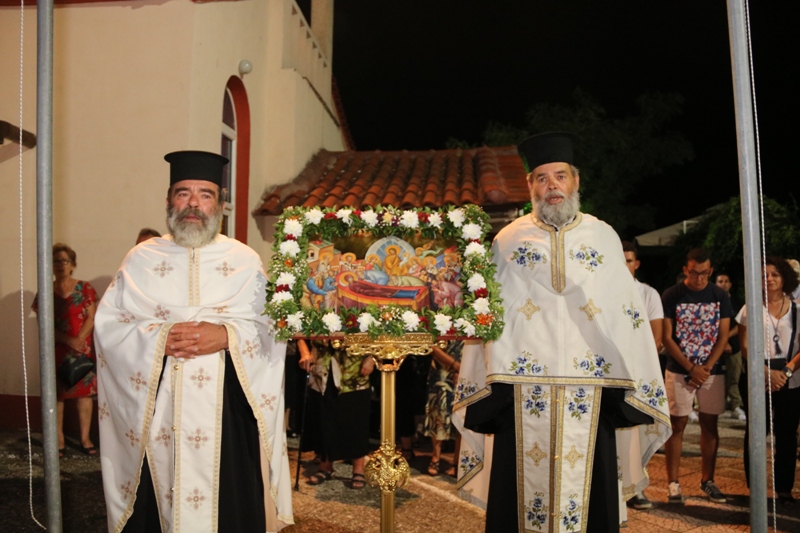 Το εσπέρας της προηγουμένης ο Σεβασμιώτατος προέστη του Πανηγυρικού Εσπερινού στον πανηγυρίζοντα Ιερό Ενοριακό Ναό Κοιμήσεως Θεοτόκου Σπηλαίου, του τέως Δήμου Τριγώνου, ευλόγησε τους άρτους και ωμίλησε επί των αναγνωσμάτων της ημέρας, παρουσία του Βουλευτού Έβρου Σταύρου Κελέτση, του Αντιδημάρχου Ορεστιάδος Πέτρου Αργυριάδη, του Διοικητού της Στρατιωτικής Διοικήσεως του 21ου Συντάγματος Πεζικού Συνταγματάρχη Ιωάννου Παρασκευοπούλου και πολυπληθούς εκκλησιάσματος.
