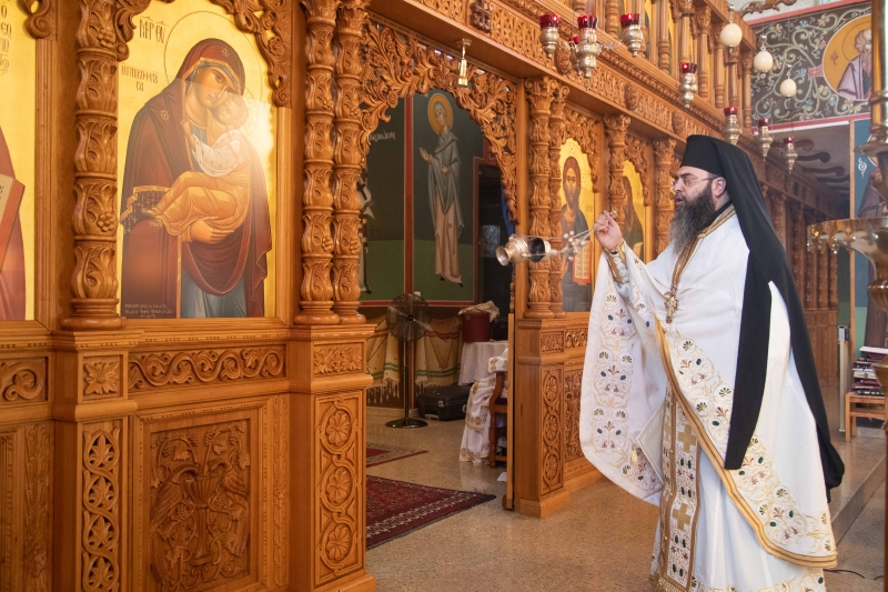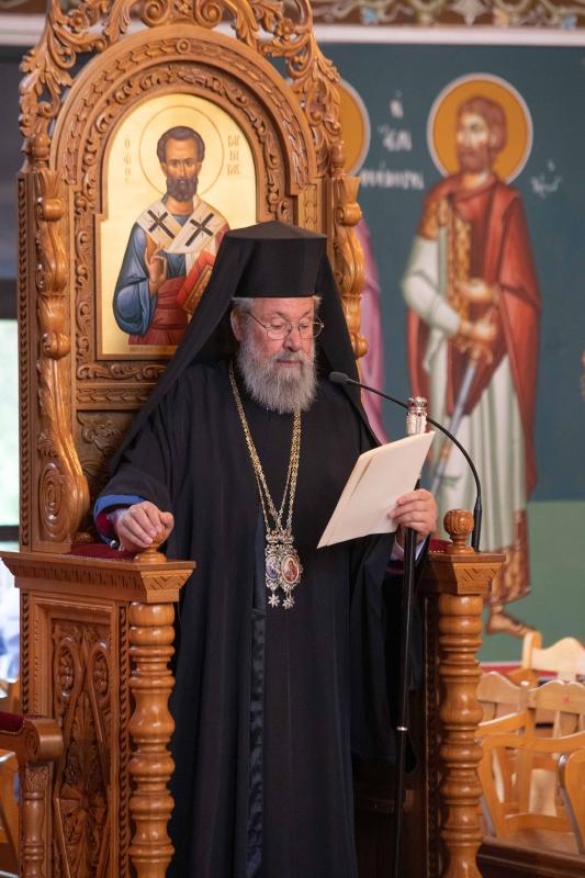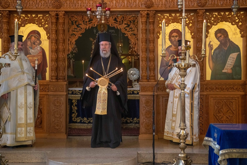 Στον όρθρο χοροστάτησε ο Μακαριώτατος Αρχιεπίσκοπος Κύπρου κ.κ. Χρυσόστομος, ο οποίος στη συνέχεια προεξήρχε του συλλειτούργου, συμπαραστατούμενος από κληρικούς τής Ιεράς Αρχιεπισκοπής.