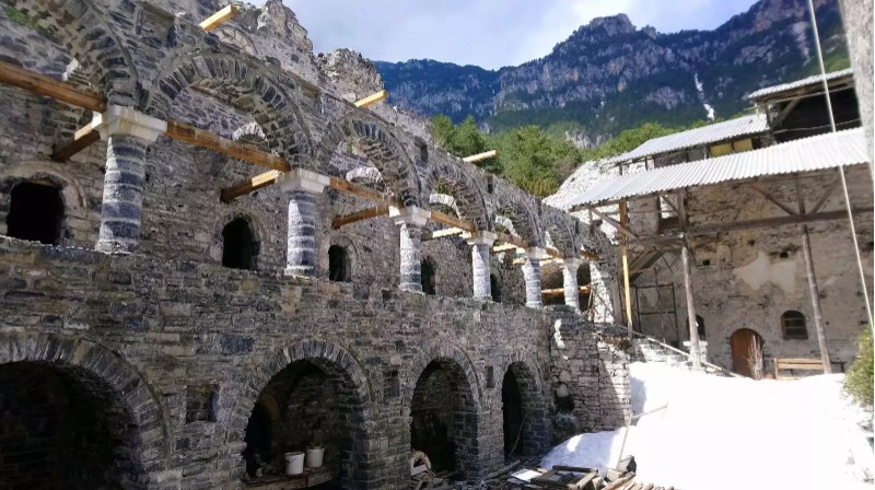 «Και ο μηχανικός δυσκολευόταν γιατί έπρεπε να γίνει ακριβώς η αναπαλαίωση. Μία εβδομάδα μετά την παρουσίαση του συγκεκριμένου προβλήματος λάβαμε μέσα σε φάκελο κάποιες φωτογραφίες από έναν Γερμανό στρατιώτη, που ήταν στην ομάδα αυτών που μετέφεραν τα εκρηκτικά για να το ανατινάξουν. Λίγο πριν από την καταστροφή, είχε σηκώσει τη φωτογραφική μηχανή και αποτύπωσε το μέρος, όπως ακριβώς ήταν προτού διαλυθεί. Μας έστειλε, μάλιστα, φωτογραφία που έδειχνε το πώς ήταν ακριβώς η γωνία του μοναστηριού που ήθελε αναστήλωση», συμπληρώνει ο μοναχός Αμφιλόχιος.