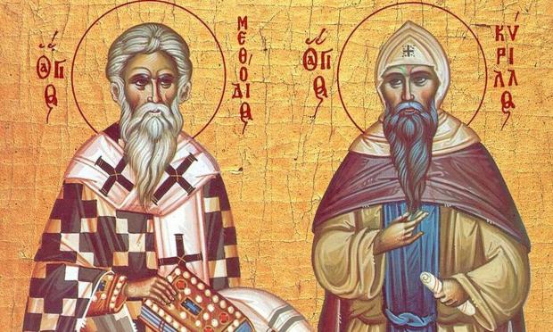 Ο 9ος αιώνας μ.Χ., όταν και έλαμψαν οι Άγιοι, είναι μια μεγάλη εποχή του Βυζαντίου. Χαρακτηρίζεται από ακμή στην πολιτική και στρατιωτική δύναμη και από άνθηση στην οικονομία, στα γράμματα, στις τέχνες. Η Εκκλησία της Ανατολής ανασυγκροτείται μετά την τρικυμία της εικονομαχίας. Το πρόβλημα της εικονομαχίας, αν μπορεί η φύση του Θεού, η θεία και η ανθρώπινη, να παρασταθεί εικονικά, έχει επιλυθεί. Τα ρήγματα όμως από τις εκκλησιαστικές και πολιτικές συγκρούσεις μεταξύ Δύσεως και Ανατολής γίνονται βαθύτερα. Τα εγκόσμια συμφέροντα, οι ανταγωνισμοί για την πνευματική και πολιτική εξουσία διασπούν την μέχρι τότε ενιαία Χριστιανική Οικουμένη σε δύο παράλληλους κόσμους, το Βυζαντινό και το Φραγκικό. Οι διαφορές είναι ορατές στα μέσα του 9ου αιώνα μ.Χ., όταν ανέκυψε το θέμα του εκχριστιανισμού των Σλάβων της Δύσεως. Σε αυτήν την αντιδικία μπλέκονται οι δύο Θεσσαλονικείς αδελφοί.