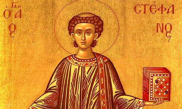 Βασίλειον διάδημα, ἐστέφθη σὴ κορυφή, ἐξ ἄθλων ὧν ὑπέμεινας, ὑπὲρ Χριστοῦ τοῦ Θεοῦ, μαρτύρων Πρωτόαθλε, σὺ γὰρ τὴν Ἰουδαίων ἀπελέγξας μανίαν, εἶδές σου τὸν Σωτῆρα, τοῦ Πατρὸς δεξιόθεν. Αὐτόν οὖν ἐκδυσώπει ἀεί, ὑπὲρ τῶν ψυχῶν ἡμῶν.