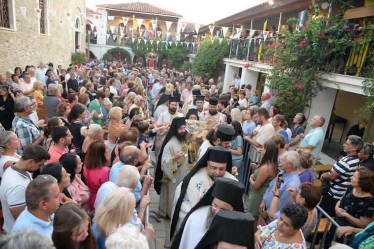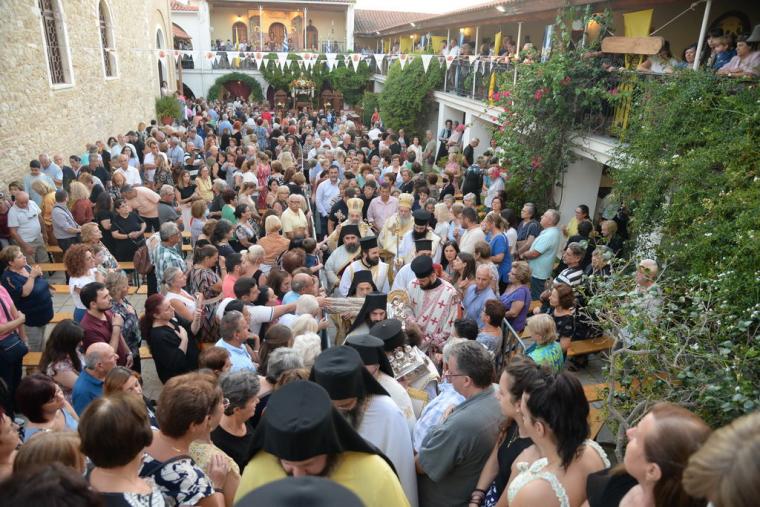 Μετά τά ἐγκώμια ἠκολούθησε, ὃπως κάθε χρόνο, ἡ Ἱερά Λιτανεία τῆς Εἰκόνος τῆς Παναγίας στήν ἐσωτερική καί ἐξωτερική αὐλή τῆς Μονῆς, μέ τά πλήθη τῶν πιστῶν νά ραίνουν μέ ἂνθη καί μῦρα, ἀλλά καί μέ δάκρυα τήν Παναγία Μητέρα τοῦ Κυρίου μας καί Μητέρα ὃλου τοῦ κόσμου.
