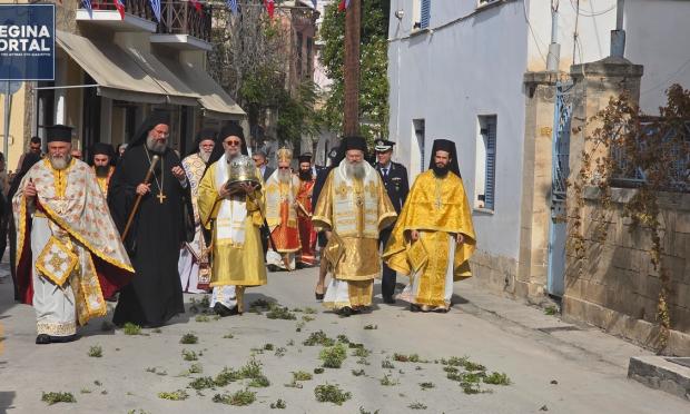Με ζεστό, ηλιόλουστο καιρό και πολύ μεγάλη προσέλευση πιστών πραγματοποιήθηκε η λιτάνευση της Αγίας Κάρας, της Ιεράς Εικόνας και των Τιμίων Λειψάνων του Αγίου Νεκταρίου, στην παραλία του νησιού και στους δρόμους του ιστορικού κέντρου.